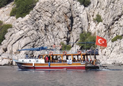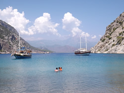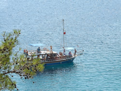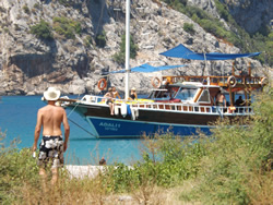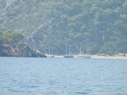 As we sit and watch one of the guests from the trip boats in Çineviz Limani where we sit joins us, he is Swiss, we chat a little then the three of us head back toward our Limani. As he approaches the beach, a vessel is sounding his horn and waving, time to be off to the next bay?
