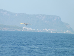 Some thing that did catch our interest was that there must have been a large fire somewhere, seaplanes dropped down to the water along side us a number of times, collecting sea water then taking off to deposit their cargo where it was greatly needed. Their routing could not be mad out, they just disappeared and reappeared into the mist?