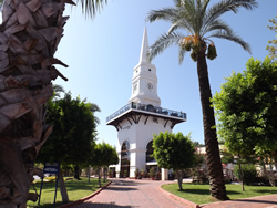 There was quite an impressive clock tower restaurant in the centre surround by a water feature park for recreation.