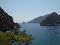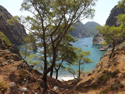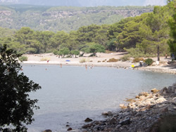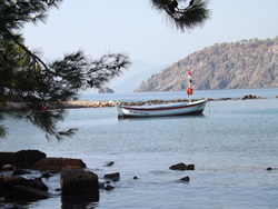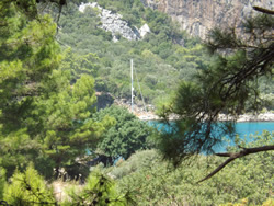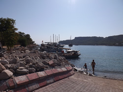 We could leave the marina at any time, we were only moving to Phaselis less than eight miles south so we thought we would have a further look around. We walked to the peninsula, along side the marina and around Ayisigi Moonlight Bay, busy it was too.