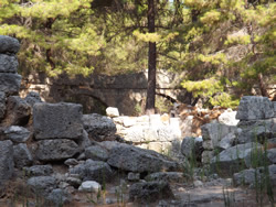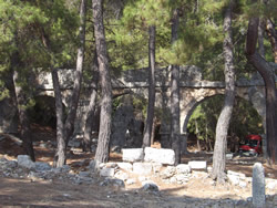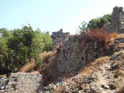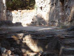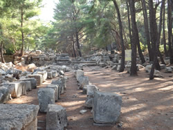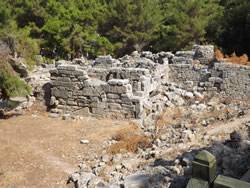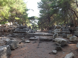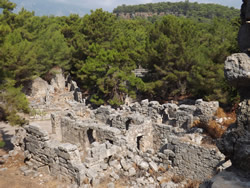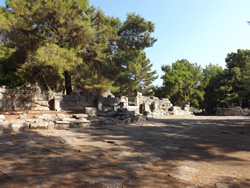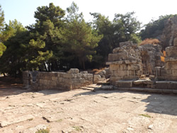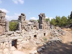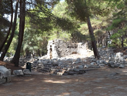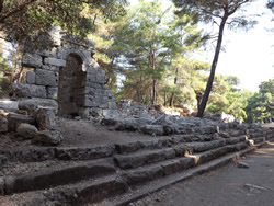 You walk straight off the beach into what was the main harbour street, an entrance fee of 8tl is requested by an official looking gent in a hut so he must be genuine? The initial entrance to Phaselis was through Hadrians Gate, you can actually see all the way through the ruins to the shores of the northern harbour.