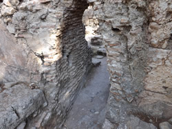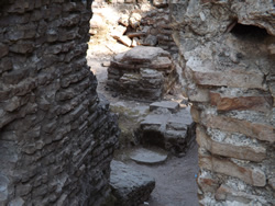 In the larger bath house carrying on northwards, the drainage still in place as is what was once the decorative bath floor, decayed by centuries of weather.