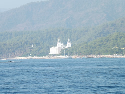 We had another "rolly night" in the anchorage, so not much sleep for the second night in a row. So, we are up and on the way south to Olympus early. We head out and turn south through the channel between Üçadalar and the mainland. The shore area known as Tekirova is just a waterfront of hotels and resorts, the first thing to focus on for us is the large white complex that marks the end of it ahead!
