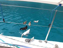 We entered the anchorage, very busy this time, we had barely settled and the ducks were around us scrounging their lunch?