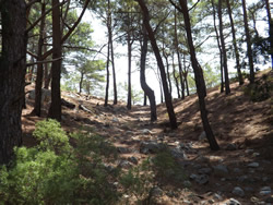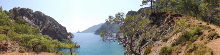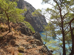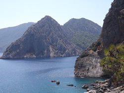 The short path takes us high and over the other side we can see the entrance to Cauvas Limani, and way in the distance Taslik Burnu, around which Finike sits - the view very spectacular.